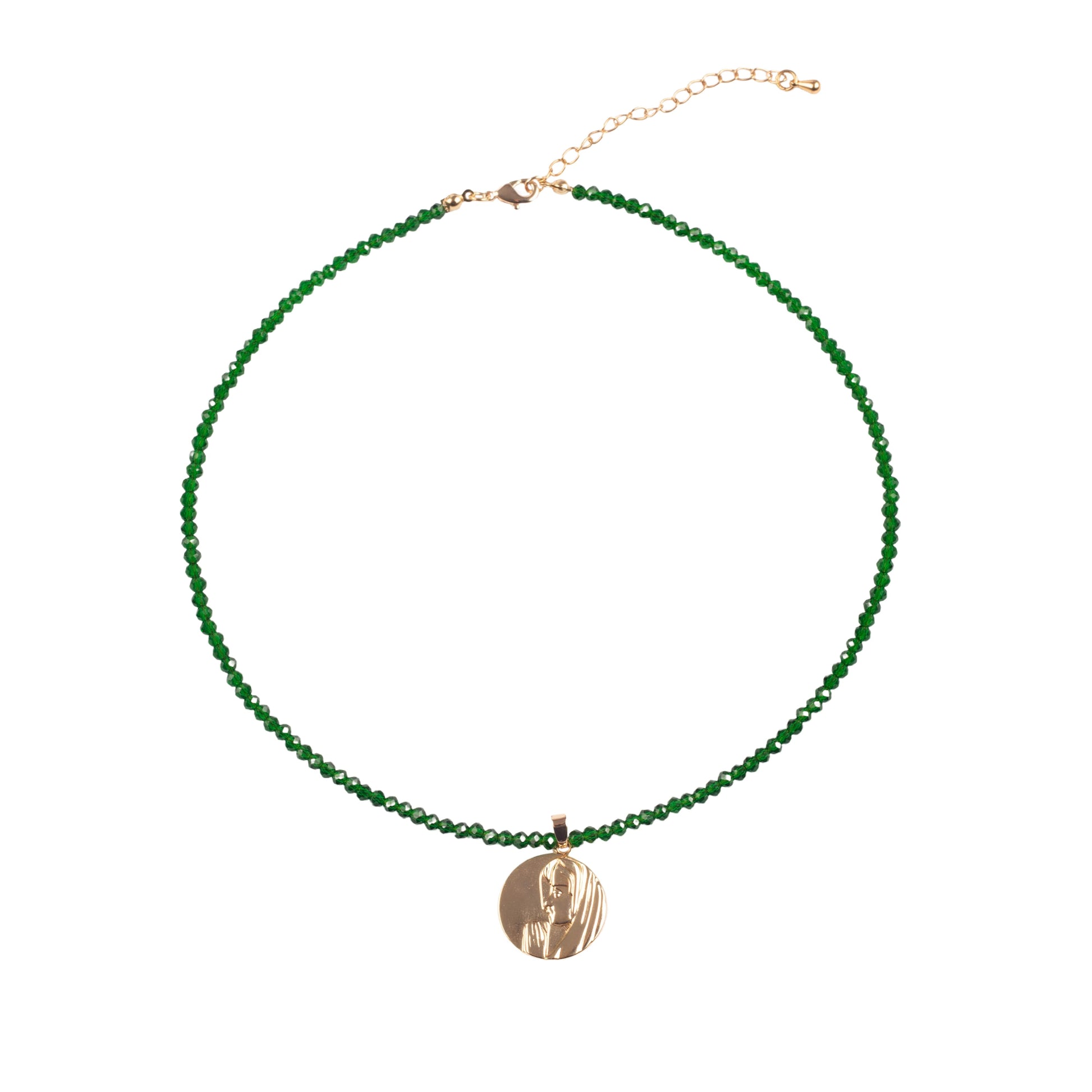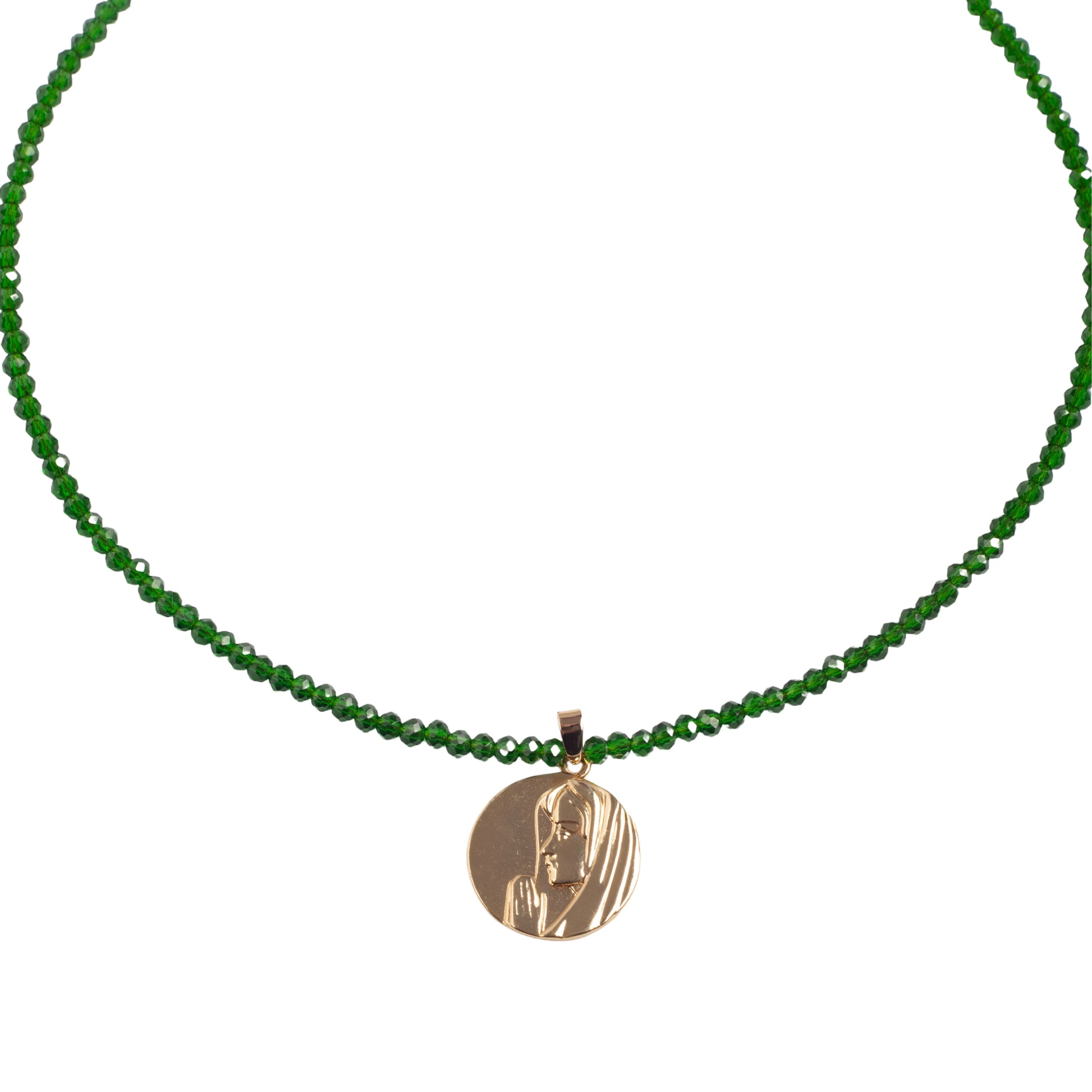 Necklace with crystals and a Virgin medal in 14k gold plating