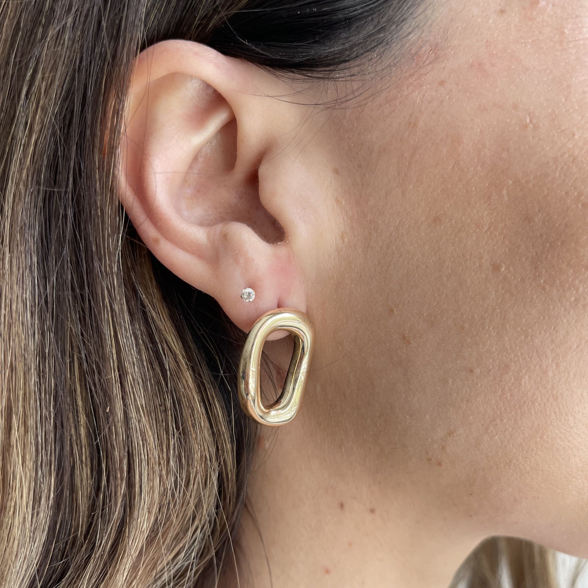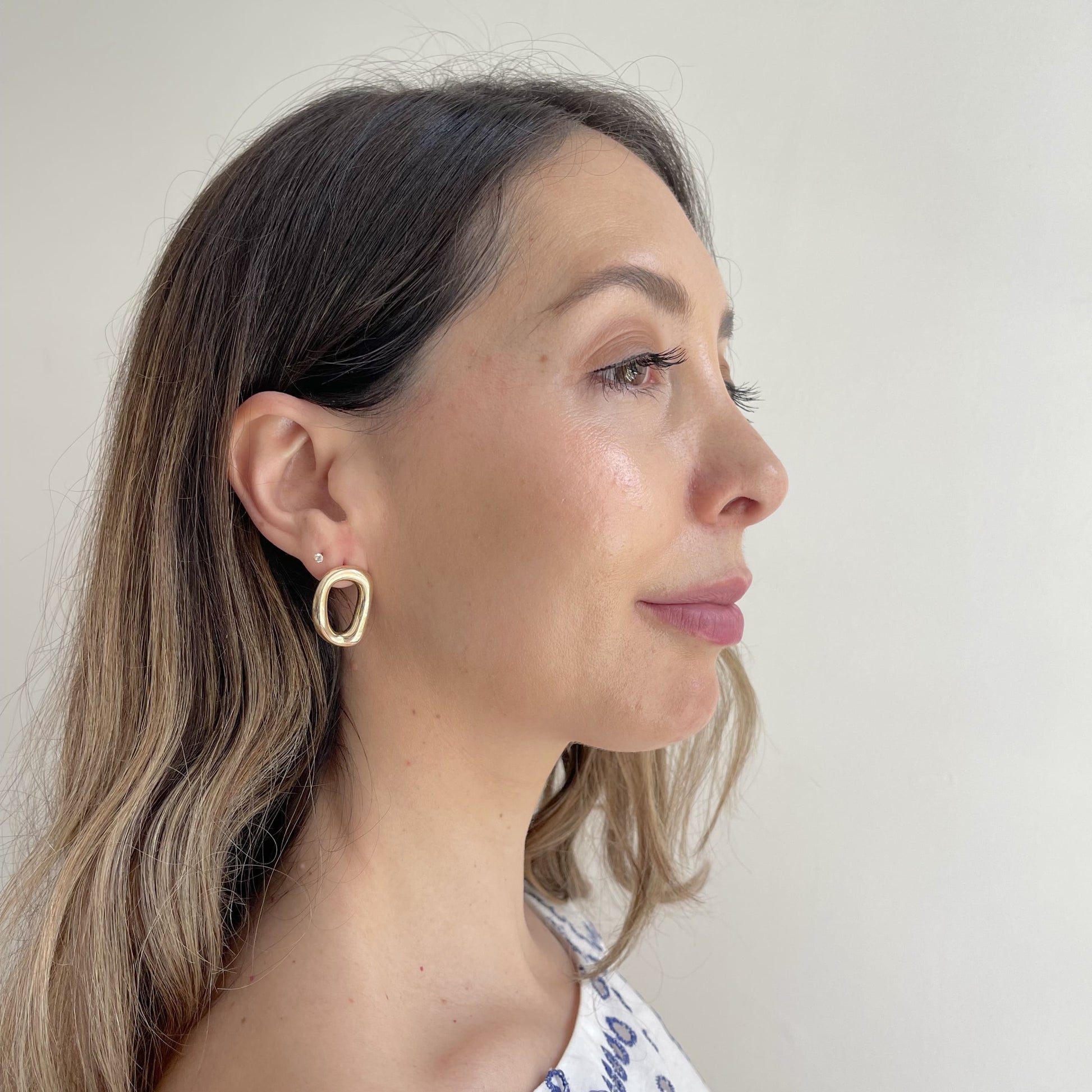 Irregular circle earring in gold plated with rhodium